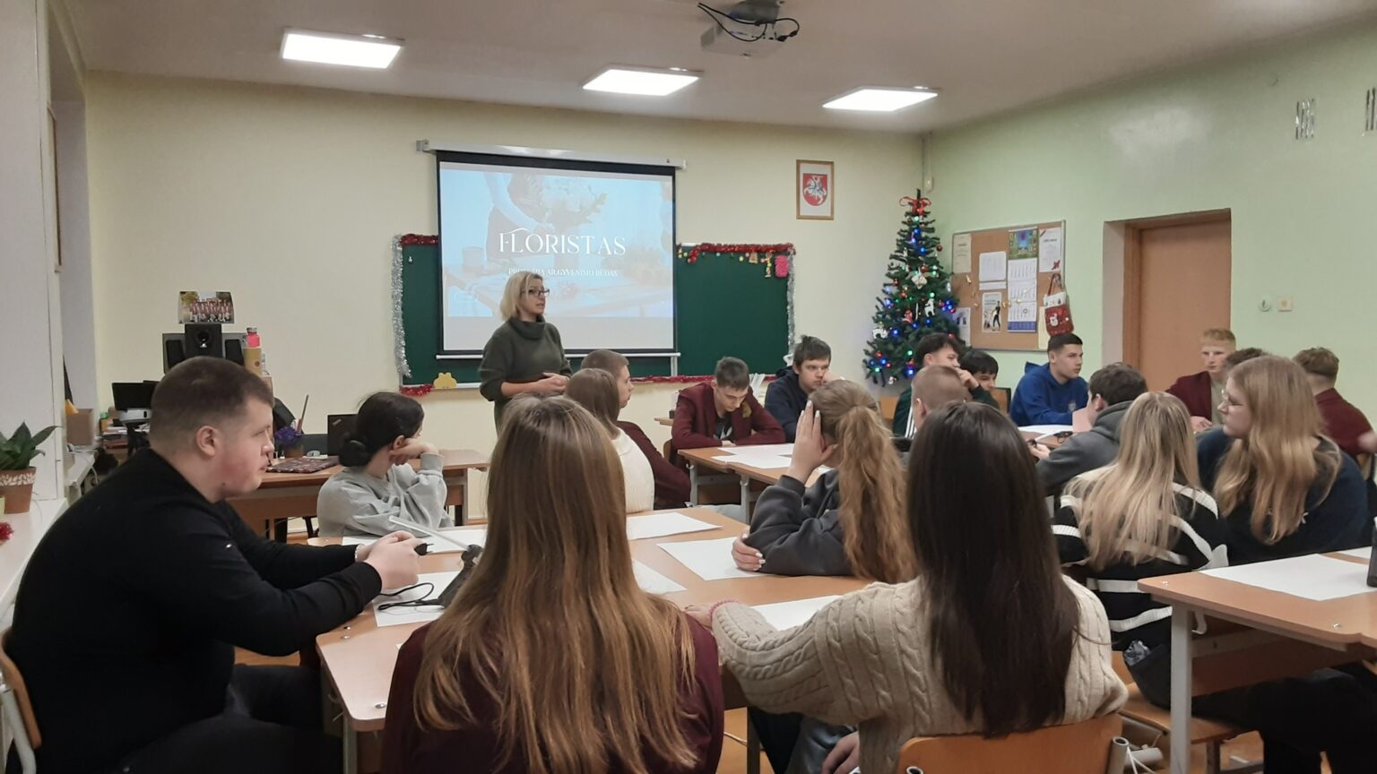 Gruodžio 16 dieną gimnazijoje buvo organizuota veikla, apimanti profesinį informavimą, veiklinimą ir kūrybinę kalėdinę edukaciją. IIb klasėje su mokiniais susitiko